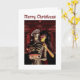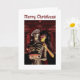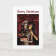 Tarjeta Merry Christmas. Funny skeleton with woman