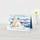 Merry Christmas greeting card to a grandson or other special person in your life decorated with a polar bear floating on an iceberg in icy winter waters hand painted with watercolor. On the inside is a coordinating shade of dark blue with text you can edit to fit your needs.