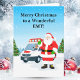 This festive EMT Christmas card brings a fun twist to emergency-service life, featuring Santa in front of an ambulance while his trusty reindeer takes the driver’s seat. Snowy skies and sparkling trees add cheerful holiday charm.