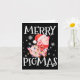 Tarjeta Merry Pigmas Navidades divertidos de cerdo alumbra