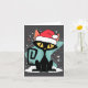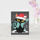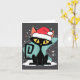 Tarjeta Mid Century Modern Cat Santa Hat Christmas 70s Ret