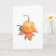 Tarjeta de saludo doblada que incluye y la mini calabaza temática del otoño descansando sobre una hoja de roble caída. Disponible en dos tamaños: estándar y pequeña. Compra una sola tarjeta o en paquetes. ©Dominic A.Blanca. Todos los derechos reservados.