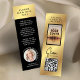 Promociona tu lanzamiento de libro con este elegante diseño de marcadores de Black & Gold MINI con tu foto de autor y código QR. Con un efecto de oro falso y un fondo negro, la imagen de portada de tu libro personalizado y el texto promocional. Perfecto para dar a los lectores potenciales en la firma de libros, lanzamiento de libros o eventos para promocionar su nueva versión de libros. La URL escaneable puede enlazar a tu sitio web o a tu lista de librerías. Este pequeño marcador de 3x1" es genial para escritores y autores que quieren promocionar su nuevo libro.