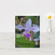 orquídea de faleanopsis en miniatura cerca de una tarjeta de agradecimiento en blanco