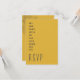Antes de que comience la cuenta regresiva, cuente sus invitados con estas tarjetas RSVP temáticas de Año Nuevo. Elegantemente subestimado, cada una de estas tarjetas de respuesta presenta una paleta de color simple de texto azul sobre oro en el reverso de la invitación de coordinación. La parte trasera está estampada con un estallido azul de fuegos artificiales por un lado. Introduzca su fecha de "respuesta antes" en la página del producto para personalizar para su fiesta.