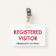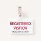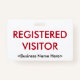 Este diseño de insignias mínimo incluye el mensaje "VISITOR REGISTRADO", y un nombre de empresa de personalizable u otro mensaje de personalizado. Una insignia como esta podría ser usada para indicar que un visitante o invitado en un lugar de trabajo está permitido de estar ahí. [~Z0000307]
