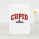This greeting card features the words “CUPID” and “vibes” centered on a plain white background. “CUPID” sits at the top in large, deep red capital letters that curve slightly upward like a smile. Each red letter has a thin gray outline and a soft shadow that makes it look a little raised from the page. Under it, “vibes” appears in smaller black cursive writing, like quick handwriting, placed just below the red word. With no characters or scenery, the focus stays on the message and the contrast between the strong red letters and the softer black writing. It feels meaningful to give because it keeps things simple while still saying you’re thinking about love and a sweet, easy connection 🥰❤️.