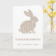 The card features a unique, hand-lettered bunny silhouette in a warm, muted beige, perfectly centered on a pristine white background for a clean and contemporary feel.