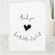 Tarjeta de agradecimiento simple y linda con tipografía escrita a mano que dice 'gracias desde el fondo de mi corazón' con un corazón negro en el centro de la tarjeta. El corazón negro también está en el interior de la tarjeta, que se puede quitar si no se desea y se puede personalizar con su propio texto y nombre si es necesario.