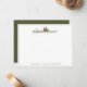 Envía a tus amigos y familiares una nota de invierno - para decir hola, felicitarlos o simplemente para darles una actualización sobre ti y tu familia - en esta tarjeta de nota festiva. El diseño presenta una escena de bosque de pino invernal en acuarela en la parte superior de la tarjeta con un hogar acogedor ubicado entre los árboles. La tarjeta de nota se puede personalizar con la inclusión de tu(s) nombre(s) en la parte inferior. Los nombres aparecerán en un verde invernal del mismo color que el borde minimalista y la parte posterior de la tarjeta.