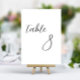 Mejora tu recepción con esta Tarjeta minimalista elegante de número de mesa de boda. Con un diseño limpio, tipografía elegante y estilo atemporal, es la forma perfecta de guiar a tus invitados con estilo y sofisticación.