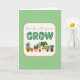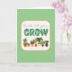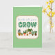 ¡Mira cómo creces! Esta tarjeta funciona para muchas ocasiones, incluyendo cumpleaños, un nuevo trabajo, una nueva casa, graduación, o cualquier otro logro digno de celebrar. La tarjeta tiene un fondo verde y dice "Mira cómo creces" con plantas en macetas a lo largo de la parte inferior.