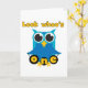 Búho diseña camisetas de primer cumpleaños para bebés, trajes para el cuerpo, tazas, imanes, tarjetas y más con un texto que dice "¡Mira quién es 1!
