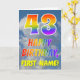 Esta diversión y 43.as características del diseño coloridas de la tarjeta de felicitación del cumpleaños una pintura de un cielo azul nublado, junto con un gran número "43" y el mensaje "FELIZ CUMPLEAÑOS," teniendo un espectro del arco iris inspiraron el colorante del modelo de la pendiente, en el frente. El frente también ofrece un nombre receptor editable. Las características interiores un mensaje adaptable del saludo del cumpleaños, o se podrían quizás despejar y salieron del espacio en blanco si se va un mensaje a ser escrito a mano en lugar de otro. Una tarjeta de cumpleaños adaptable como esto pudo ser una manera de la diversión de reconocer alguien el tercer cumpleaños cuarenta. [~Z0000371]