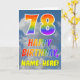 Esta diversión y 78.as características del diseño coloridas de la tarjeta de felicitación del cumpleaños una representación de un cielo azul con las nubes, junto con un gran número "78" y el mensaje "FELIZ CUMPLEAÑOS," teniendo un espectro del arco iris inspiraron el colorante del modelo de la pendiente, en el frente. El frente también ofrece un nombre receptor modificado para requisitos particulares. Las características interiores un mensaje adaptable del saludo del cumpleaños, o se podrían quizás despejar y salieron del espacio en blanco si se va un mensaje a ser escrito a mano en lugar de otro. Una tarjeta de cumpleaños adaptable como esto pudo ser una manera de la diversión de enviar un mensaje en conmemoración alguien el octavo cumpleaños setenta. [~Z0000371]