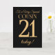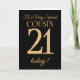 Una tarjeta de cumpleaños número 21 de moda para un ‘Primo Especial', con un número 21 compuesto de números con efecto oro y la palabra ‘Primo', con efecto oro, en un fondo negro. El mensaje interno, que puedes cambiar si lo deseas, es "Feliz Cumpleaños".