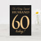 Una tarjeta de cumpleaños número 60 de moda para un 'Esposo muy especial', con un número 60 compuesto por números de efecto oro y la palabra 'Esposo', en efecto oro, sobre un fondo negro. El mensaje interno, que puedes cambiar si lo deseas, es "Feliz Cumpleaños".