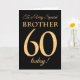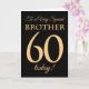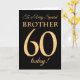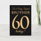 Tarjeta Moda 60.º efecto oro en negro, cumpleaños hermano