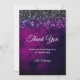 Tarjeta Moda morado negro goteo de plata purpurina gracias