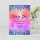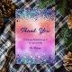 Moda giradamente iridiscente unicornio purpurina monograma tarjeta de agradecimiento. Asombroso lindo purpurinoso y moda descargable tarjeta de agradecimiento. Perfecto para mandar a la familia o amigos en temporada de vacaciones o cualquier otra ocasión como bodas, cumpleaños, duchas para bebés, duchas de boda y fiestas de soltera. Para ser más especial, está adornada con un bonito purpurina falso. Este diseño también puede transferirse a cualquier producto en zazzle. Puede personalizarlo con su propio texto e información. NOTA: Se trata de gráficos impresos planos, sin purpurinas reales, joyas o piezas elevadas