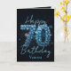 Celebra 70 increíbles años con esta impresionante tarjeta de cumpleaños de personalizable. El frente presenta un audaz "70" adornado con brillantes piedras preciosas azules, que simbolizan fuerza y sabiduría. El guión elegante añade un toque personalizado, destacando maravillosamente en un fondo rico y profundo que realza el brillo. El texto en el frente y en el interior es totalmente personalizable, lo que le permite diseñar un mensaje único para el destinatario. Además, con una opción de descarga digital instantánea, puede personalizarla e imprimirla sin esfuerzo. Haga que este hito sea verdaderamente inolvidable: ¡comience a personalizar hoy!