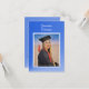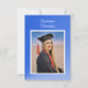 A unique card with a modern blue, gradient color scheme. Similar blue background on the back of the card containing invitation details. Suitable for a high school or college graduation. The smaller size allows you to enclose the card with you graduation announcement -- send it only to those you wish to invite to the party. The photo and all text are easily changed with the template. NOTE: there are online sources that allow you to create a free graduation website. Just do a search for it and choose the one you want. Selecting “Personalize this design” offers you several edit options to easily change the text (wording, plus type font, color, size, position) and to edit the design elements. You may also want to scroll down to the section “Transfer design to a product” for a few suggestions about other items this design can be used on.