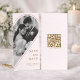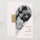 Una tarjeta moderna de ahorro con arco curvo en oro que presenta tipografía elegante y un diseño minimalista sofisticado. Los tonos neutros suaves y los detalles cálidos en oro crean un ambiente atemporal y lujoso, mientras que el código QR ofrece acceso fácil a su sitio web de boda o detalles del evento. Totalmente personalizable con su foto, nombres y fecha — perfecto para bodas elegantes y contemporáneas.