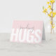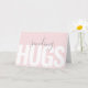 Una simple tarjeta moderna llena de amabilidad y afecto, este diseño tiene el texto "enviando abrazos" en una combinación de letra negrita y manuscrita en la parte frontal de la tarjeta. El fondo pastel de color rosa suave es una opción de color popular y añade al aspecto contemporáneo de la tarjeta. El texto interior es una expresión reflexiva que se puede pedir tal como está escrita o personalizar con el texto deseado. Esta tarjeta no solo es una excelente opción para ocasiones especiales como el Día de San Valentín, sino que también es una opción perfecta para enviar una tarjeta reflexiva a alguien que está enfermo, necesita un estímulo o quizás un familiar o amigo que vive solo o en un hogar de ancianos. Tantas posibilidades para alegrar el día de alguien con esta simple tarjeta.