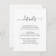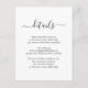 Proporcione a sus invitados con detalles importantes con esta elegante tarjeta moderna de inclusión para boda en negro y blanco que presenta una fuente de escritura moderna. Artículos coincidentes disponibles. Solicitudes personalizadas son bienvenidas.