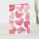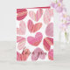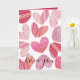 Tarjeta moderna de San Valentín. Con muchos corazones creados con acuarela en una gama de rojos a rosa sonrosado sobre un fondo blanco con textura de salpicadura de acuarela. Dentro de esta tarjeta hay un gran corazón con texto sobre un fondo rojo. Fácil de editar con tu nombre.