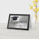 Haga que el graduado se sienta especial y honre su logro con una tarjeta de graduación personalizada. Celebra años de trabajo duro con esta moderna tarjeta de graduación de felicitaciones personalizadas de metal plateado y negro. Cambie fácilmente el nombre del graduado y del año utilizando el menú personalizar esta plantilla. Conmemorar su día especial y crear la tarjeta de graduación personalizada perfecta. Diseño original de búho azul.