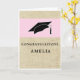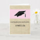 Moderna tarjeta de graduación rustica con nombre de graduado. Tarjeta de graduación con gorra de graduación, texto Felicitaciones y un nombre del graduado en la parte delantera - personaliza con tu nombre. El texto está en un fondo rústico beige y la gorra es rosa. Personalice el texto dentro de la tarjeta para adaptarlo a sus necesidades.