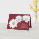 Fotografía con un recorte de tres hermosas margaritas blancas contrastadas con un fondo de color rojo. Esta tarjeta se ofrece en varios colores de fondo diferentes. Las tarjetas de felicitación cubren la parte delantera de esta postal que puede utilizarse como tarjeta de agradecimiento, tarjeta de cumpleaños o cualquier otra de su elección. ¡personalizar con tu texto y/o fotos para convertirlo en una especie!