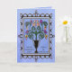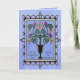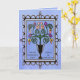 Un fondo azul perwinkle de tonalidades muy ricas da lugar a esta interpretación original y moderna de un clásico ramo de flores multicolor de estilo victoriano con un jarrón rodeado de un marco de hierro forjado. El saludo interno "Te amo, mamá!" es personalizable.