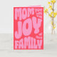 This Mother's Day Card has 'Mom You Are The Joy Of Our Family' in pink on a red background. A stylish, modern, bold and trendy card to show your mom how much you love her. Shout your love to the skies. Happy Mother's Day to all the the mothers out there.