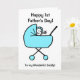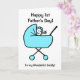 Dibujo animado divertido de un bebé varón agitando desde un cochecito azul. La tarjeta dice Feliz primer día del padre a mi maravilloso papá. Personalice fácilmente esta tarjeta editando el texto de la plantilla en el frente y en el interior. ¡Gracias por ver mis diseños!