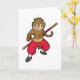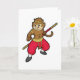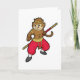 Tarjeta Mono como Guerrero con Bastón y Banda en la Cabeza