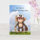 ¡Celebra el cumpleaños de un niño de 12 años con esta juguetona tarjeta de béisbol! Un mono divertido, listo para salir al campo con su murciélago y guante, se para bajo un cielo brillante. Perfecto para los aficionados al béisbol, este diseño enérgico y alegre es la mejor manera de enviar sus deseos de cumpleaños a un joven activo de doce años.