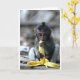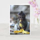 Tarjeta Mono de macaque lindo del bebé que come el plátano
