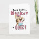 Tarjeta Mono Fiesta Rosa 1.ª camiseta de cumpleaños y rega