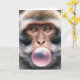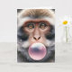 Tarjeta Mono lindo soplando burbujas chicle en blanco