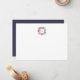 Nuestras tarjetas planas personalizadas de papel de moda cuentan con un ramo de flores silvestres en acuarelas vibrantes, con su monograma inicial en el centro de coordinación de verde oscuro. Las tarjetas cambian a un sutil patrón de diamante punteado en azul de medianoche.