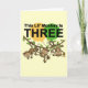 Tres pequeños monos balanceándose de un árbol en los monos Swinging Camisetas de cumpleaños, trajes para el cuerpo, tazas, tarjetas, bolsos de té, botones y otros artículos para un tema de monos ¡3 años a tu hijo le encantará!