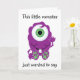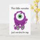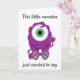 Monstruo adorable de los cyclops con un ojo grande cubierto parcialmente por un rizo perdido y con un diente de dineral en los smailes de Halloween y las ondas púrpuras y verdes hola. Un regalo lindo, festivo.