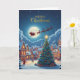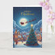 Send warm Christmas wishes with this enchanting holiday greeting card featuring a glowing Christmas tree, a peaceful snow-covered village, and Santa and his reindeer soaring across a full moon sky. The cozy houses, twinkling lights, and serene winter night create a magical scene that captures the heart of Christmas.