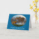 Una mami mamá y su lindo ternero con un lago y montañas a lo lejos. También aparece un texto de personalizable que dice "Feliz Día de la Madre". Puede elegir otro color de fondo.