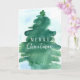 Saludos navideños de Feliz Navidad con una mano de árbol de estilo moderno pintada con gruesos lavados de color verde de agua en un fondo de agua azul cálido. En el interior está la misma acuarela con texto que se puede editar para adaptarlo a sus necesidades. Bonita tarjeta para clientes, clientes y empleados.