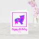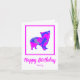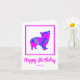 Silueta de perro morkie con un loco tópico abstracto rosa caliente y azul brillante moderno. El divertido mensaje de cumpleaños dentro puede cambiarse a lo que quieras. Personaliza la tarjeta con el nombre en la parte delantera.
