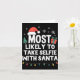 Tarjeta Most Likely To Take Selfie With Santa Christmas Fu