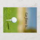 Tarjeta postal personalizada con pelota de golf en el campo de golf con la cita motivadora "Ve por ello" en tipografía clásica serif.